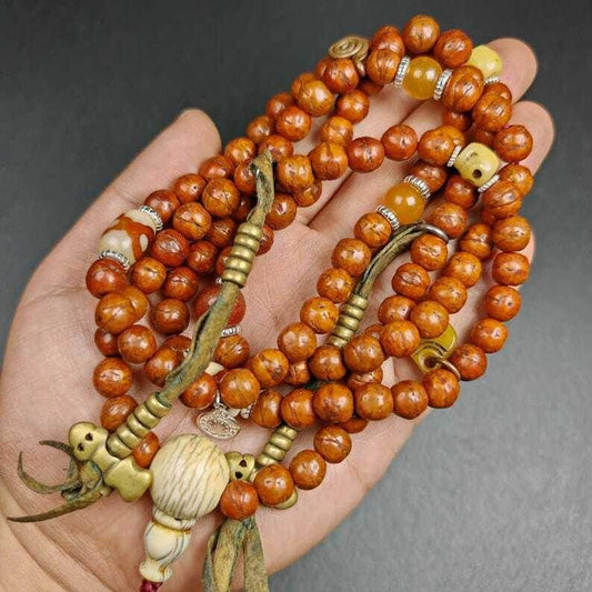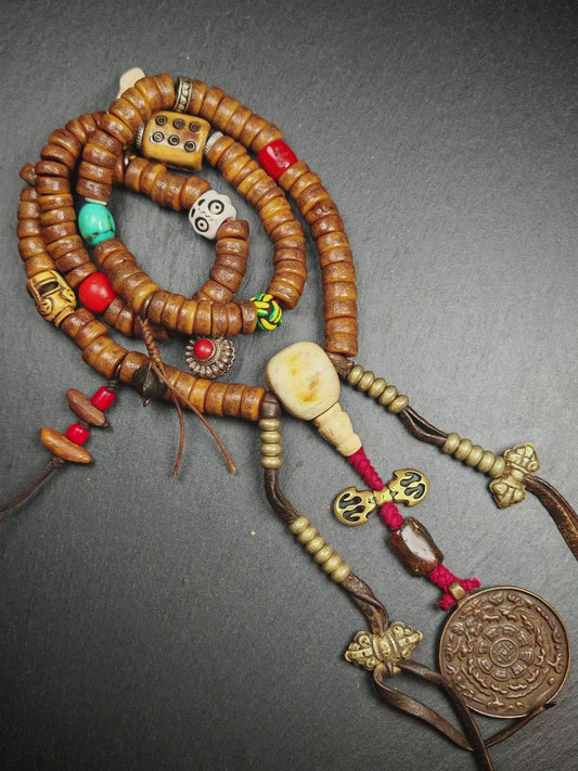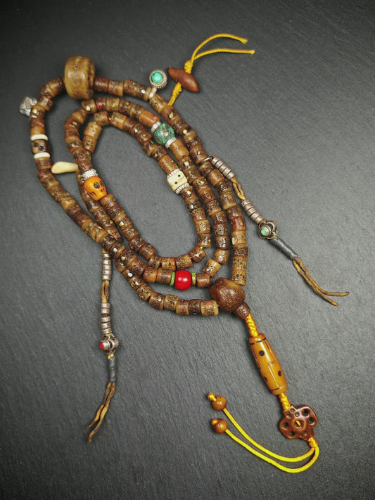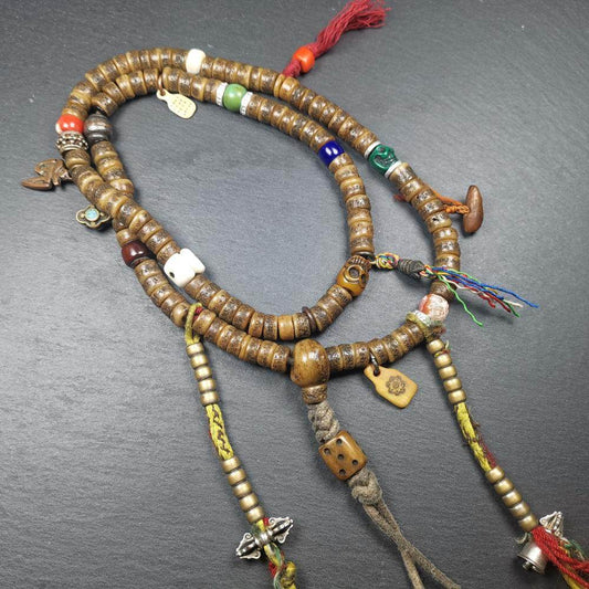 Old 8mm 108 Prayer Beads,with Unique Mix of Treasures