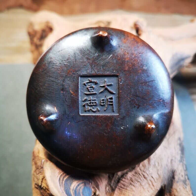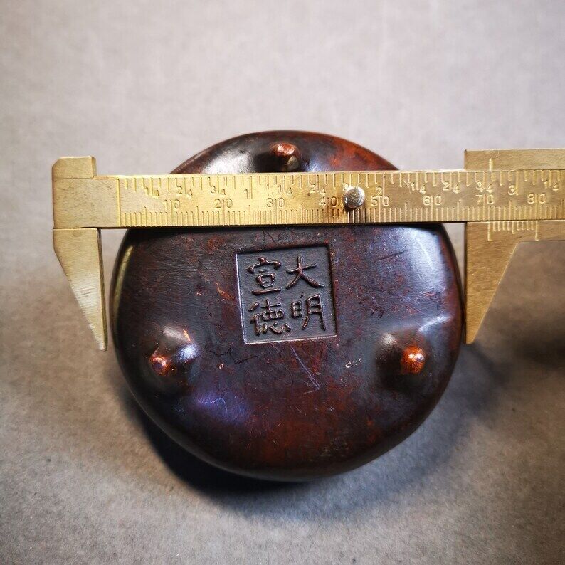 It is made of copper,the signature at the bottom is: 大明宣德(Xuande period of the Ming Dynasty),not antique but 100% copy the original,the craftsmanship is very complicated.