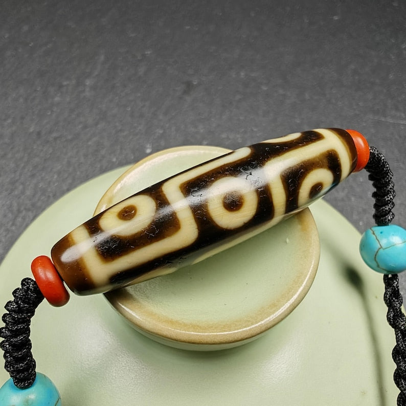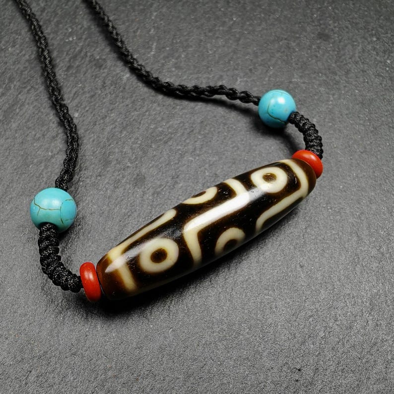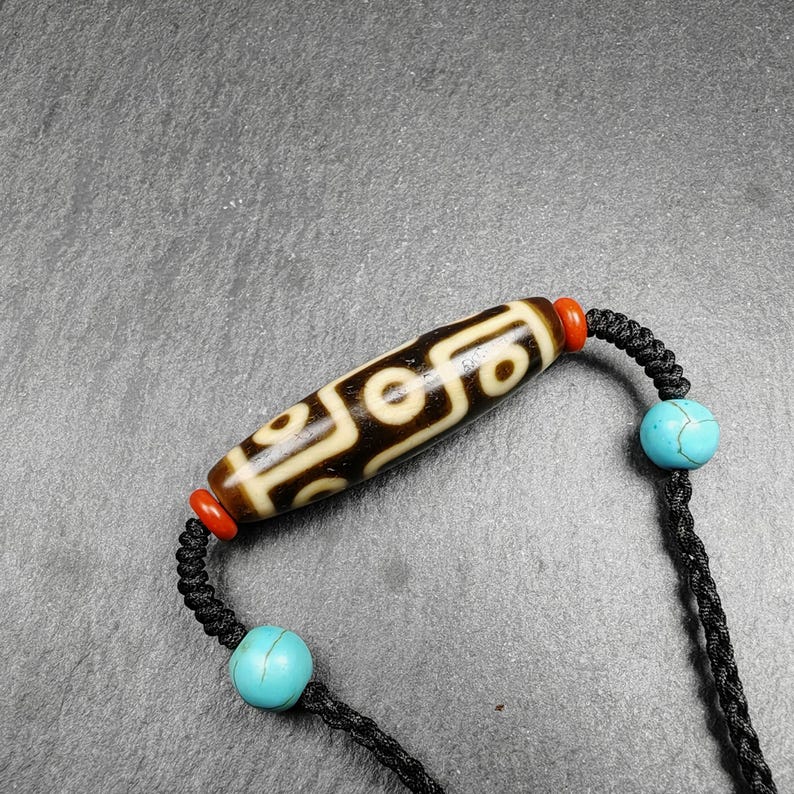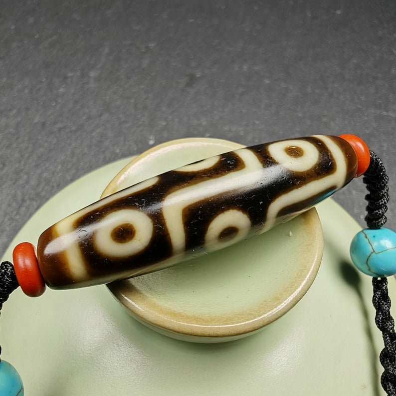 Discover the enchanting allure of our **Gandhanra Unique Tibetan 9 Eyes Dzi Bead Amulet Necklace**.