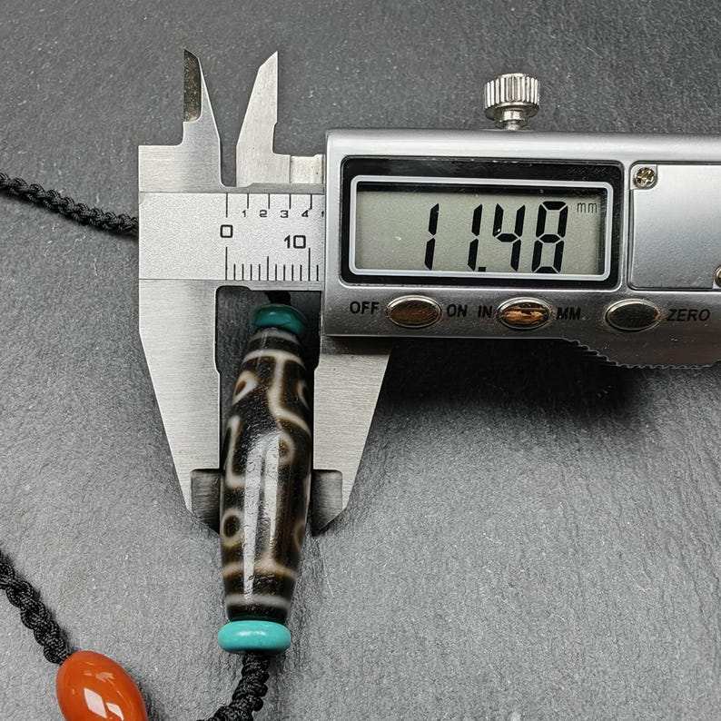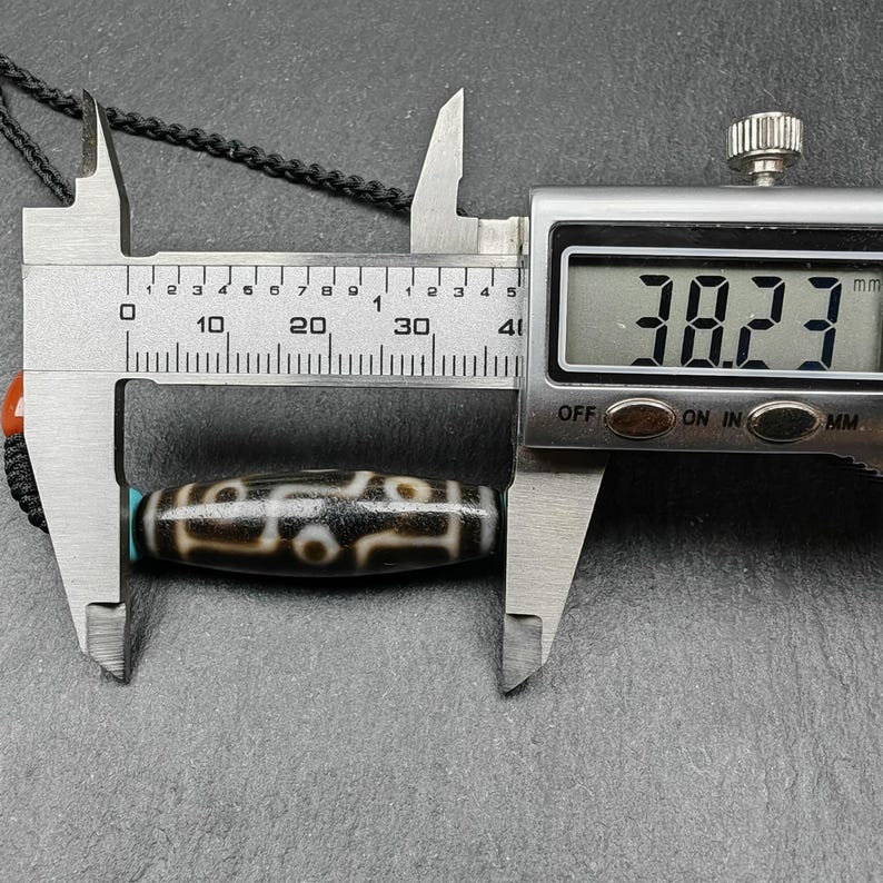 This 9 eyes dzi bead measures about 37mm x 11 mm( 1.5" x 0.4").