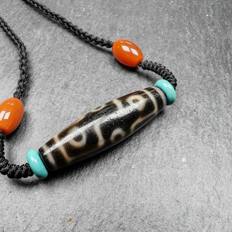 Tibetan 9 Eyes Dzi Bead Necklace | 1.5" x 0.4"