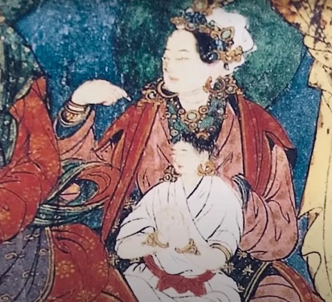 Princess Kyabje Yeshe Tsogyal, originally the consort of the Tibetan Emperor Trisong Detsen, later became the principal disciple and consort of the Nyingma master Guru Padmasambhava. She is an exceptional Tibetan Buddhist female teacher and treasure revealer. Guru Padmasambhava referred to her as "my equal." After exiling to remote regions, she continued to practice the Dharma and attained mastery in the practice of the Eight Sadhana Teachings, particularly the practice of Vajrakilaya. Yeshe Tsogyal preserved and disseminated Guru Padmasambhava's teachings and is considered the lineage holder of the Nyingma teachings and an emanation of the dakini Vajravarahi. She is highly revered in both Nyingma and Kagyu traditions.