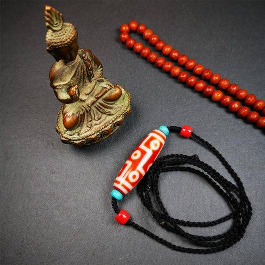 Fire Agate 9 Eyes Dzi Bead Necklace 1.93" x 0.59"