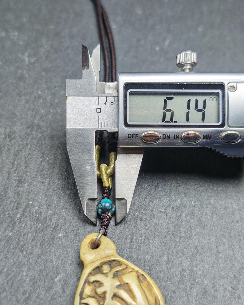 Adorned with a hand-woven lanyard and accented by a ruyi dzi and turquoise spacer bead, this pendant becomes not only a piece of jewelry, but a portable altar—a support for meditation and a sacred companion for those walking the path of awakening.