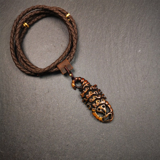 Amulet,Yak Bone Carved Scorpion Guru of Padmasambhava,2.2"