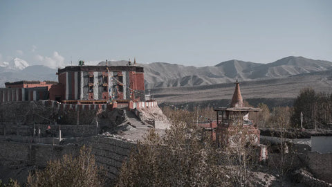 From the top of the palace, one can overlook the entire Tsarang. The most prominent structure is a monastery built in the 16th century, with a unique Sakya sect three-color exterior wall style, and in front of the monastery lies the remains of an ancient stupa.