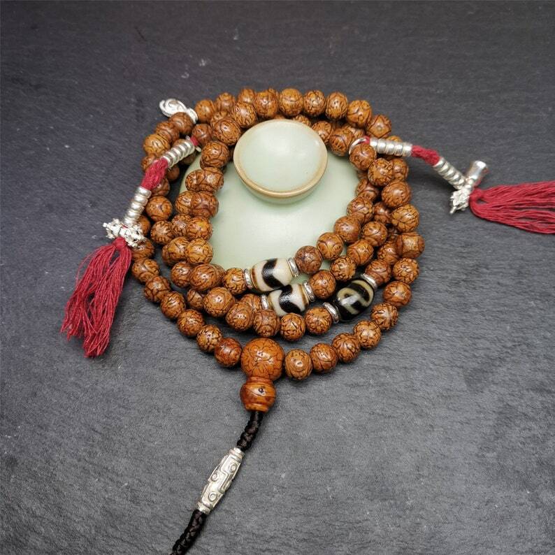 This unique dragon eyes mala necklace was selected in Baiyu Monsatery,it's an old mala about 40+ years,re string with accessories.