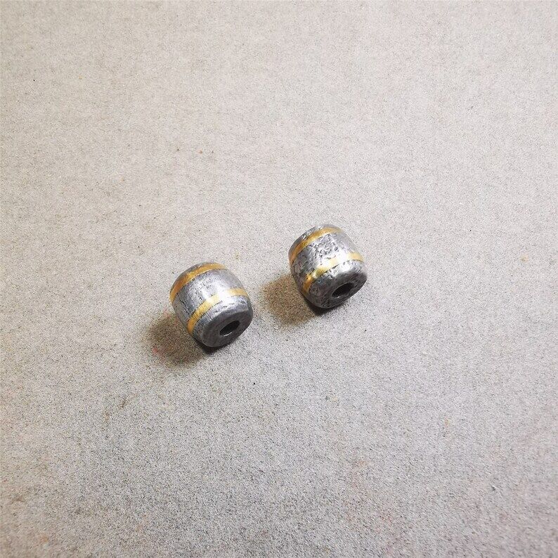 The price is A Pair of cold iron dzi stripe spacer beads.