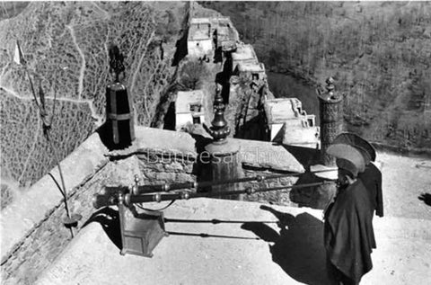 Peter Aufschnaiter (1899-1973), a mountaineer and geographer, is conducting geographical surveying at the summit of Medicine Buddha Mountain.