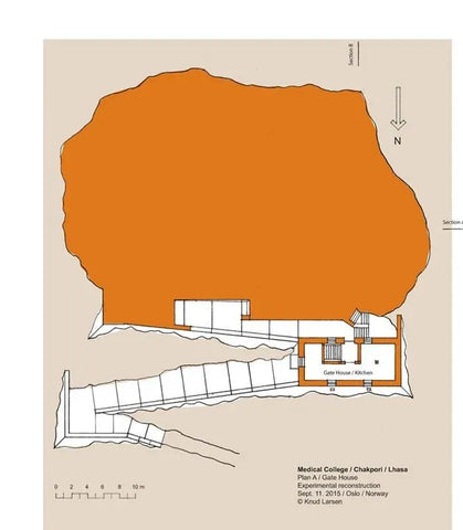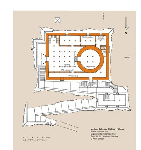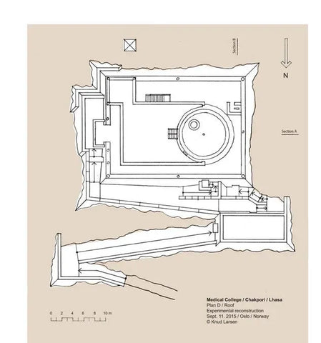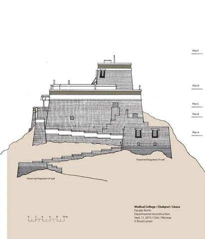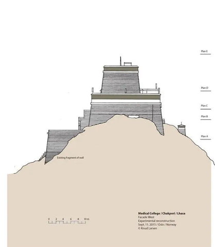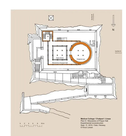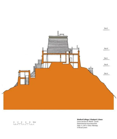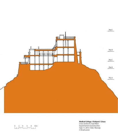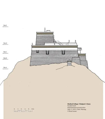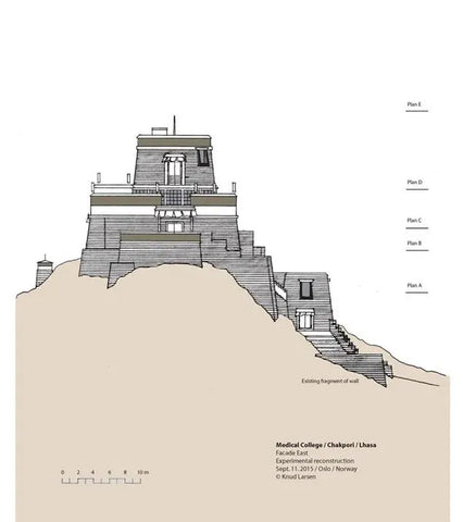 After completing the set of architectural drawings of the Medicine King Mountain in 2009, there was no progress in this research until 2012. In the summer of 2012, I happened to meet Theresia Hofer in Oslo. She was a postdoctoral researcher at the University of Oslo and had written papers on Tibetan medicine. The Rubin Museum was planning an exhibition called "Balancing the Body: The Art of Tibetan Medicine," which Theresia was working on. I told her about the idea of reconstructing the Medicine King Mountain Medical College, and she invited me to participate in the exhibition at the Rubin Museum. I contributed my drawings to the exhibition and became the author of a chapter in the exhibition publication. I titled the chapter "Pillars of Tibetan Medicine: The Medicine King Mountain and Men-Tsee-Khang Medical College in Lhasa."