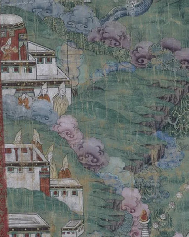 Furthermore, even if we are aware of basic information about the interior of the architectural complex, such as the Coral Decorated Infinite Life Buddha statue in the Temple of Early Achievements (*གྲུབ་ཐོབ་ལྷ་ཁང་*), the new construction of the main hall by Regent Sanggye Gyatso using twenty pillars, or the altar dedicated to the renowned Tibetan, Mongolian, and Han doctors; such historical records cannot help us understand the basic layout of the mountain roads on Medicine King Mountain, the actual layout of different functional buildings, and how people study and live in the buildings. Therefore, visual and oral historical materials are key resources for researching the architectural complex of Medicine King Mountain. In this translated text, Knud Larsen will use oral history and visual materials to try to materialize speculations and provide suggestions for "rebuilding the architectural complex of Medicine King Mountain". As in the previous article, symbols denoting images used in the original English text will be marked with an asterisk (*), and the translator will provide explanatory notes for some content.