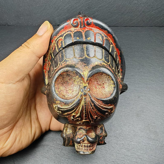 Copper Kapala Skull Cup Set - Tibetan Buddhist Offering Bowl - Ritual Implement - 16cm height
