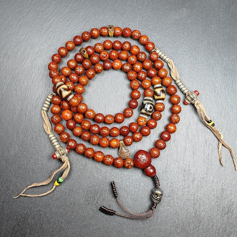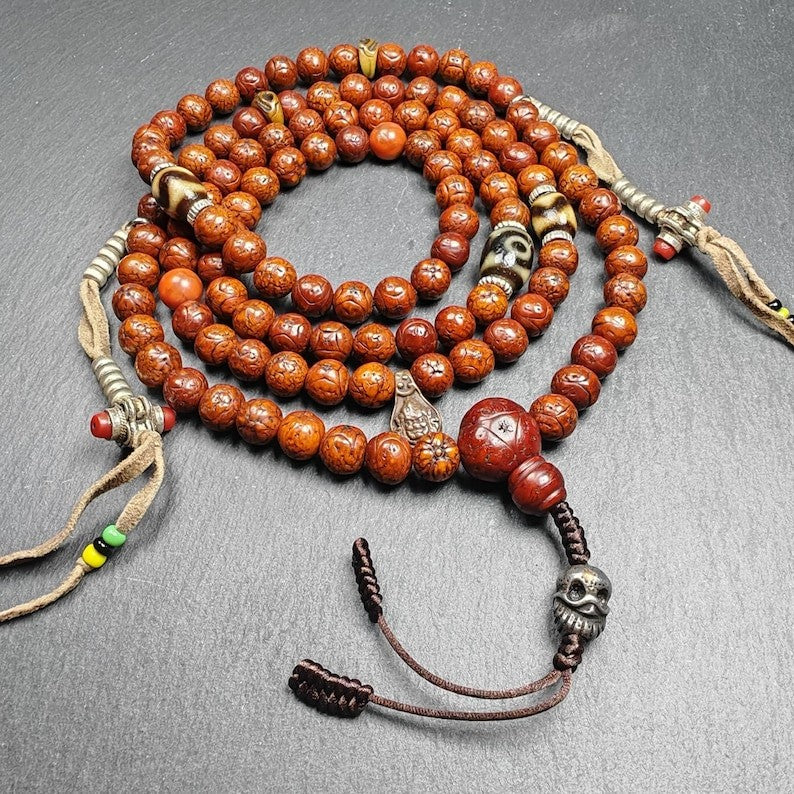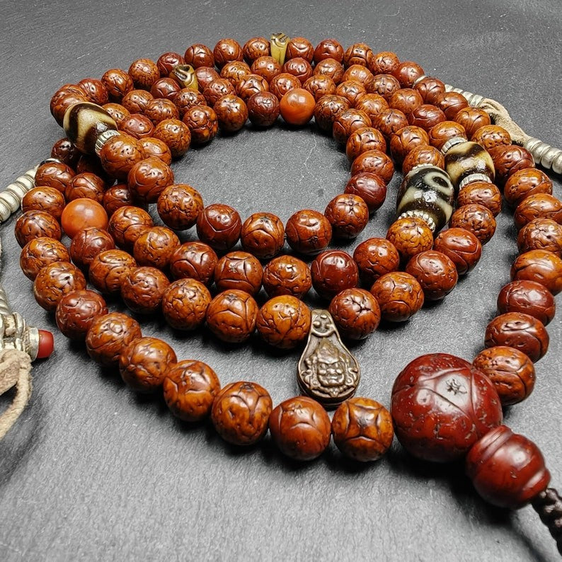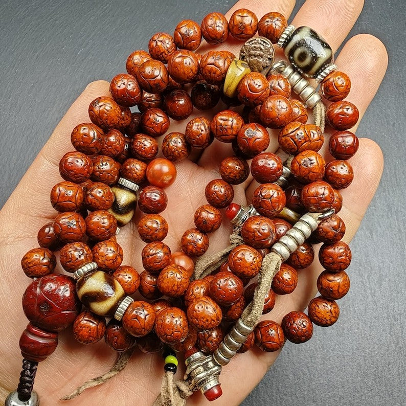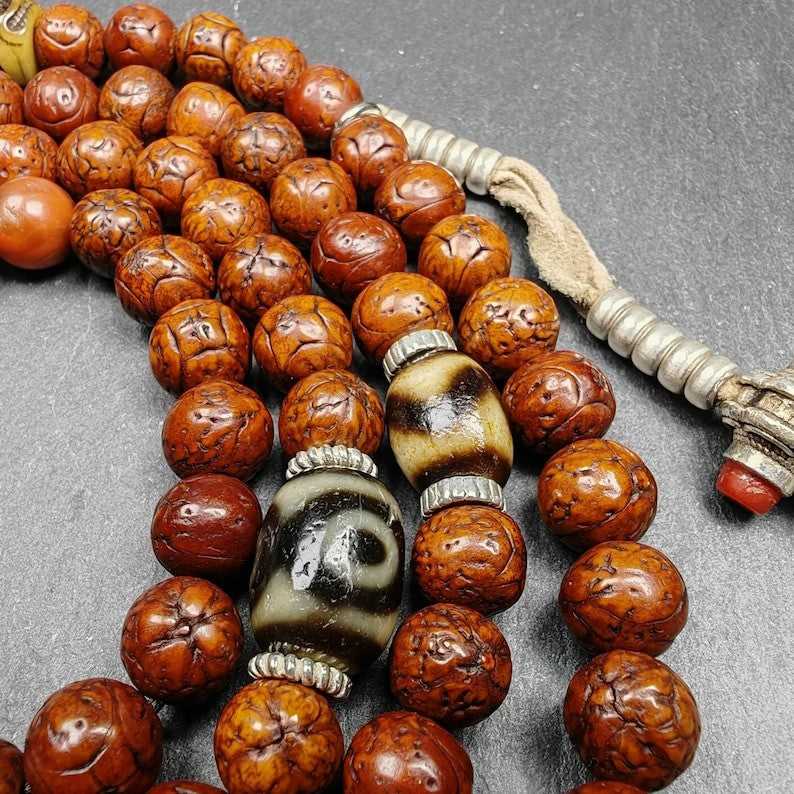 Material:kirin eyes bodhi beads,dzi beads,agate beads,yak bone,silver,thokcha