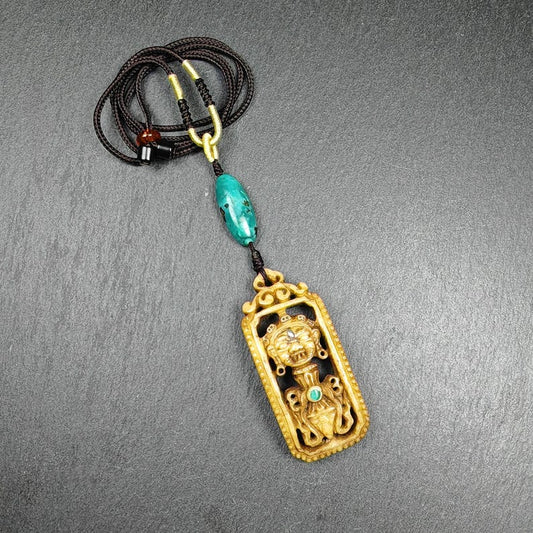 Turquoise Citipati Skull Pendant | Vintage Tibetan Amulet