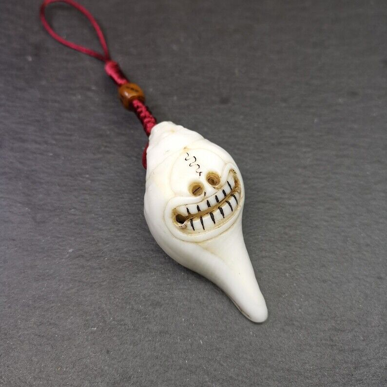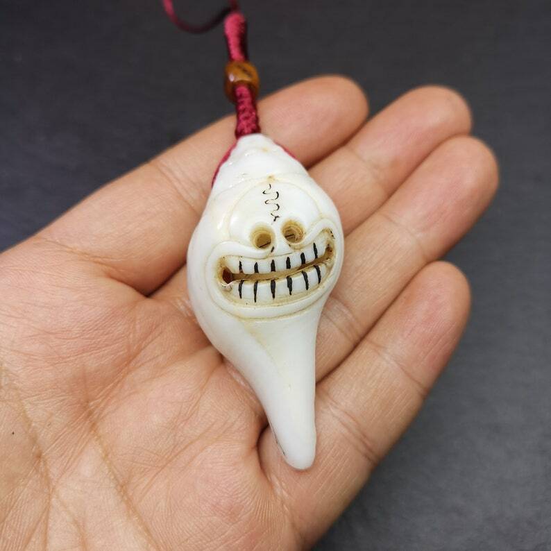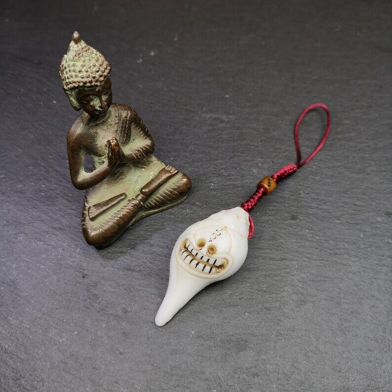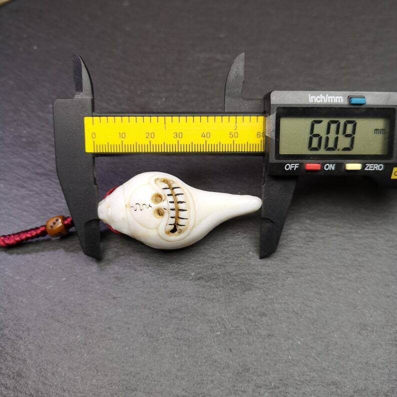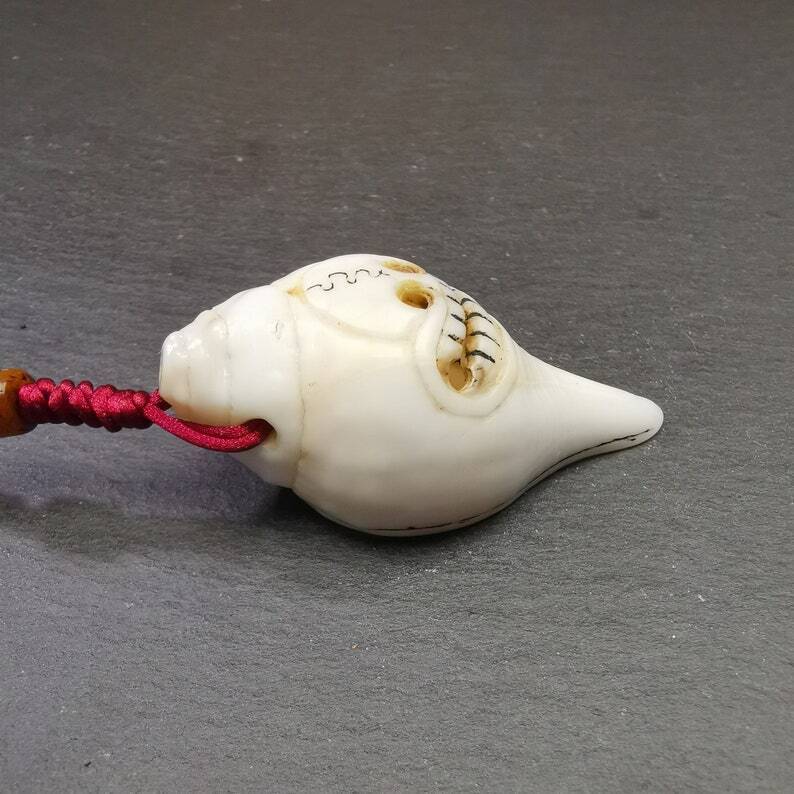 It's made of conch, entirely hand-carved with tibetan skull citipati.