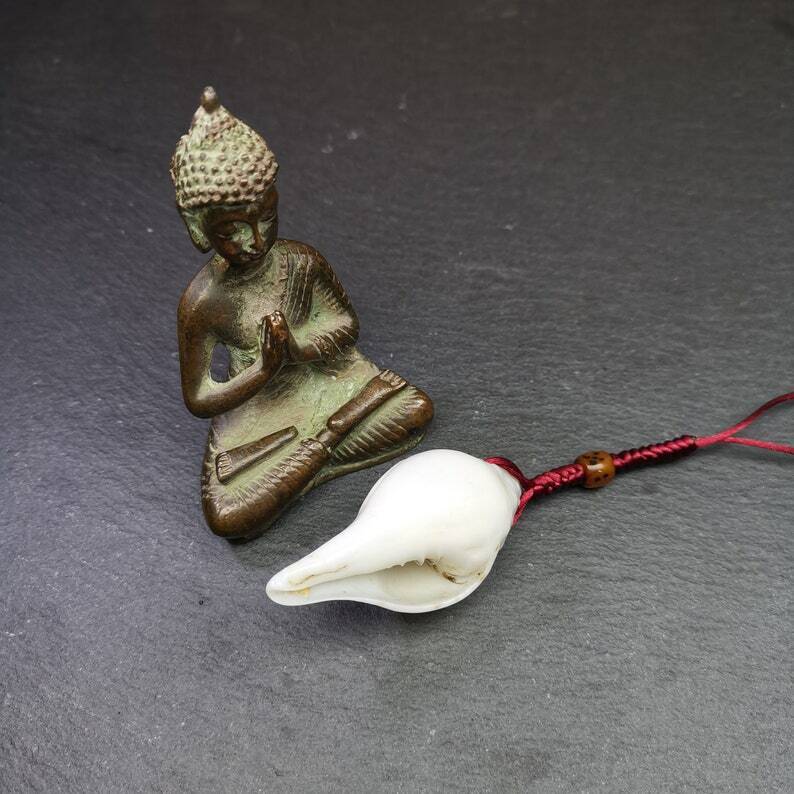 The shankha is one of the eight auspicious symbols of Buddhism, the Ashtamangala, and represents the pervasive sound of Buddhism.