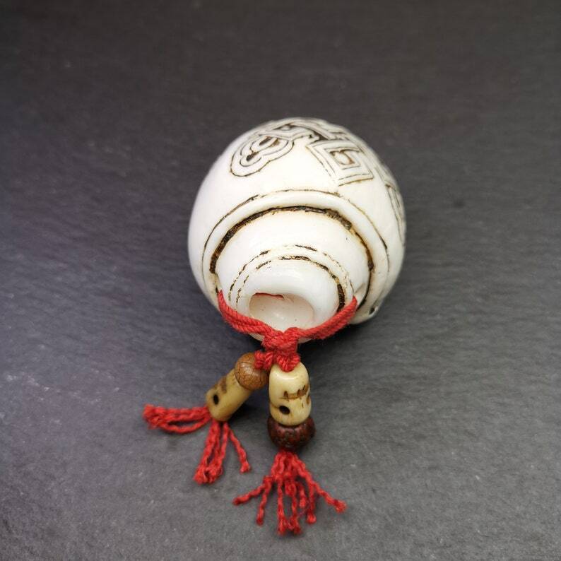 This conch ritual was hand carved by Tibetan craftsmen,collected from Gerze Tibet,about 30 years old.