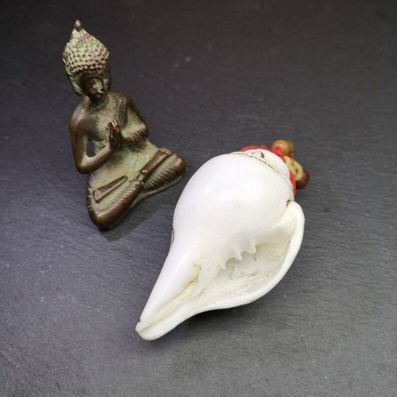 The shankha is one of the eight auspicious symbols of Buddhism, the Ashtamangala, and represents the pervasive sound of Buddhism.
