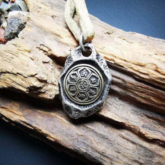 Yak Bone Carved Mandala Amulet Badge, Tibetan Buddhist Prayer Wheel Pendant,Dharma Chakra
