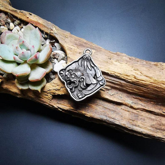 Buddhist Protective Pendant,Abstract Wrathful Vajrapani Amulet Badge,Made of Thokcha,150 years old
