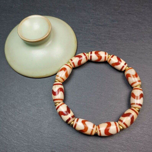 Tiger Tooth Dzi Guru Bead,T-drilled 3-Hole Mala Bead, Prayer Bead,Connector Bead