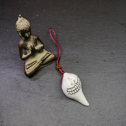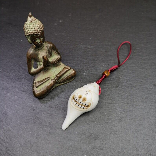 Vintage Shankha(Divine Conch) Badge,Tibetan Buddhist Protective Amulet Pendant