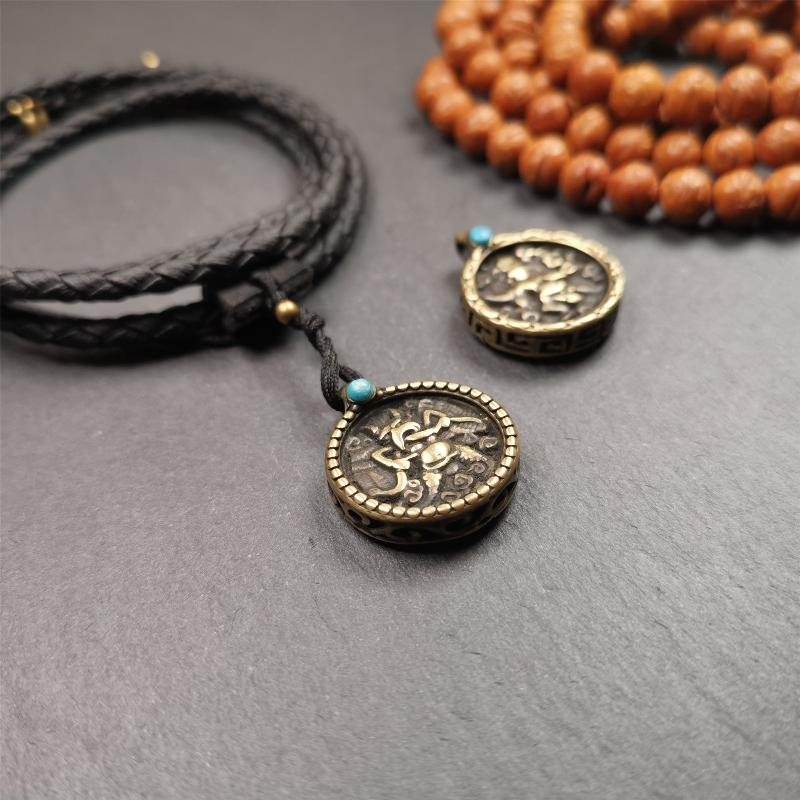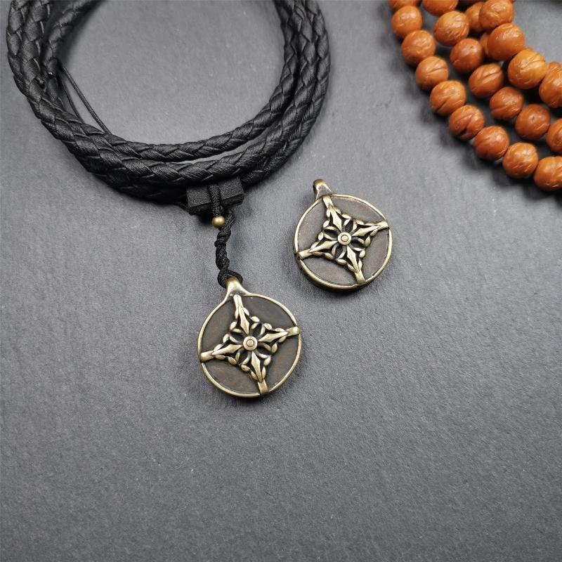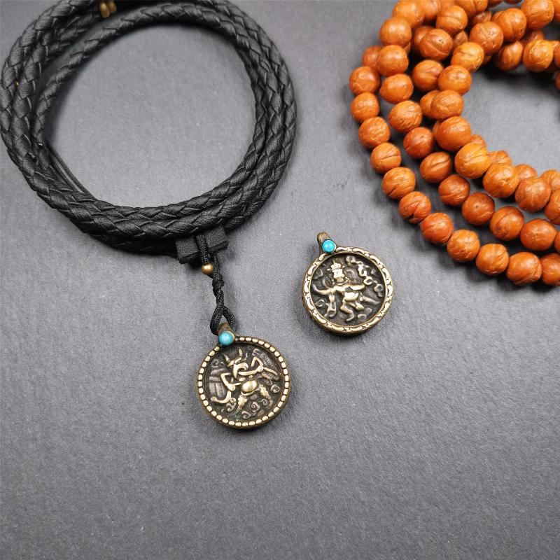 ❤The front side of the amulet features Garuda/Vajrapani, while the back side showcases the Cross Vajra. It is exquisitely crafted.Paired with a hand-woven leather cord, it looks very attractive.