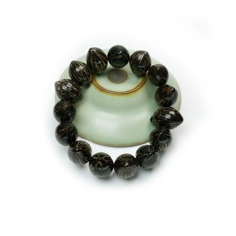 Purple Gold Rat Bodhi Seed: Also known as Purple Gold Rat, Wealth Rat, Money Seed, Three-eyed Bodhi Seed, etc. Its fruit skin is hard, brown-red, round and full, with prominent purple whiskers on the back, resembling the legendary Wealth Rat. Before the seed, there are three eyes, after the seed is a cute little mouse with a tailed buttocks, vividly named as Wealth Rat. Wealth Rat is a very precious bodhi seed, each seed looks like a lovely little mouse, and after playing, it is easy to change color and show a purple-red color with gold, hence also called Purple Gold Rat. Wearing Purple Gold Rat not only ensures safety, but also attracts wealth and treasures.