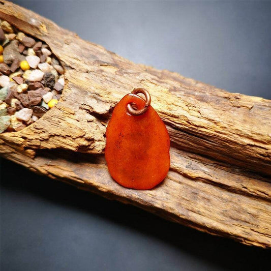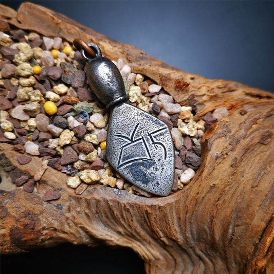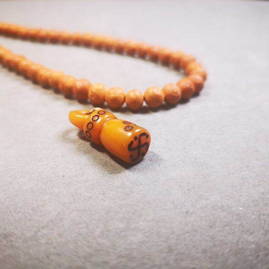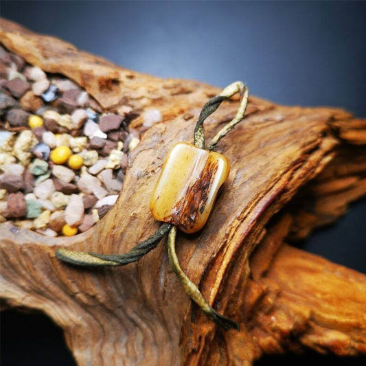 Yak Bone Carved Seal Amulet, Swastika Pattern Stamp Pendant