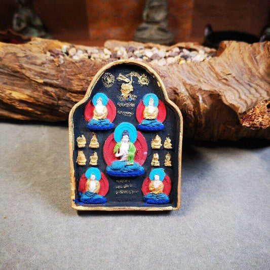 Gandhanra Painted Tibetan Tsa Tsa Mold Statue,Five Dhyani Buddhas