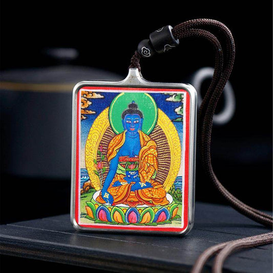 Handpainted Locket Thangka Amulet,Bhaisajyaguru,Medicine Buddha