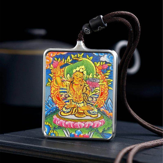 Handpainted Locket Thangka Amulet,Manjusri,Wisdom Buddha