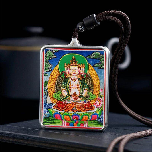 Handpainted Locket Thangka Amulet,Vairocana,Cosmic Buddha