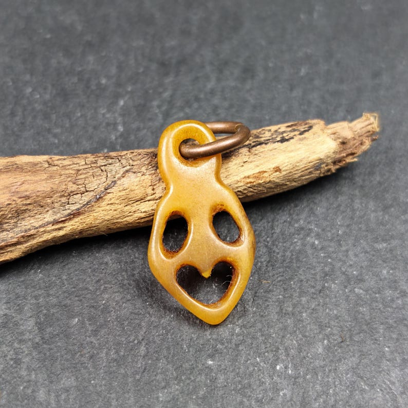 Ghost Skull Pendant - Yak Bone Carved Tibetan Amulet - 30×16mm